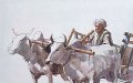 耕す農夫と牛
